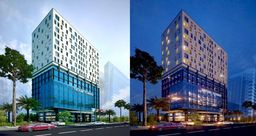 The tower includes 2 basements, 12 floors for service apartments, 4 floors and a mezzanine for office spaces with total land area of 1357 m2